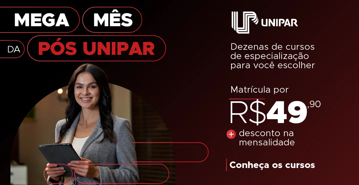 Durante o Mega Mês da Pós da UNIPAR, você pode iniciar sua especialização com uma condição especial: