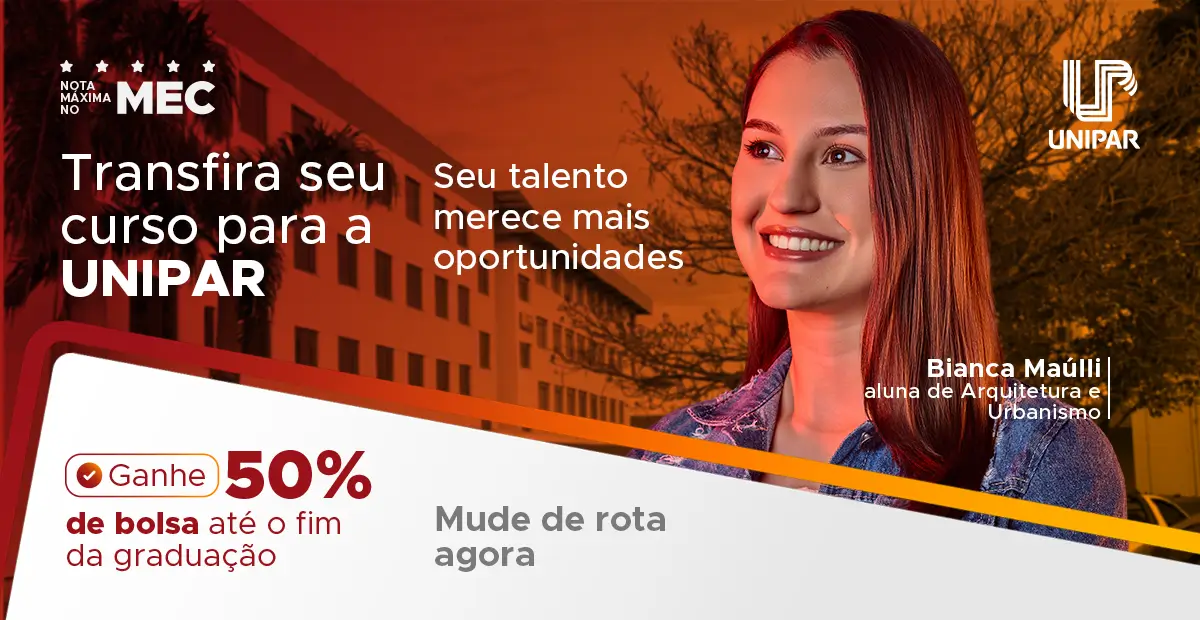 Se você já está cursando o ensino superior e deseja mudar para a UNIPAR, saiba que aceitamos transferências de forma prática e descomplicada.