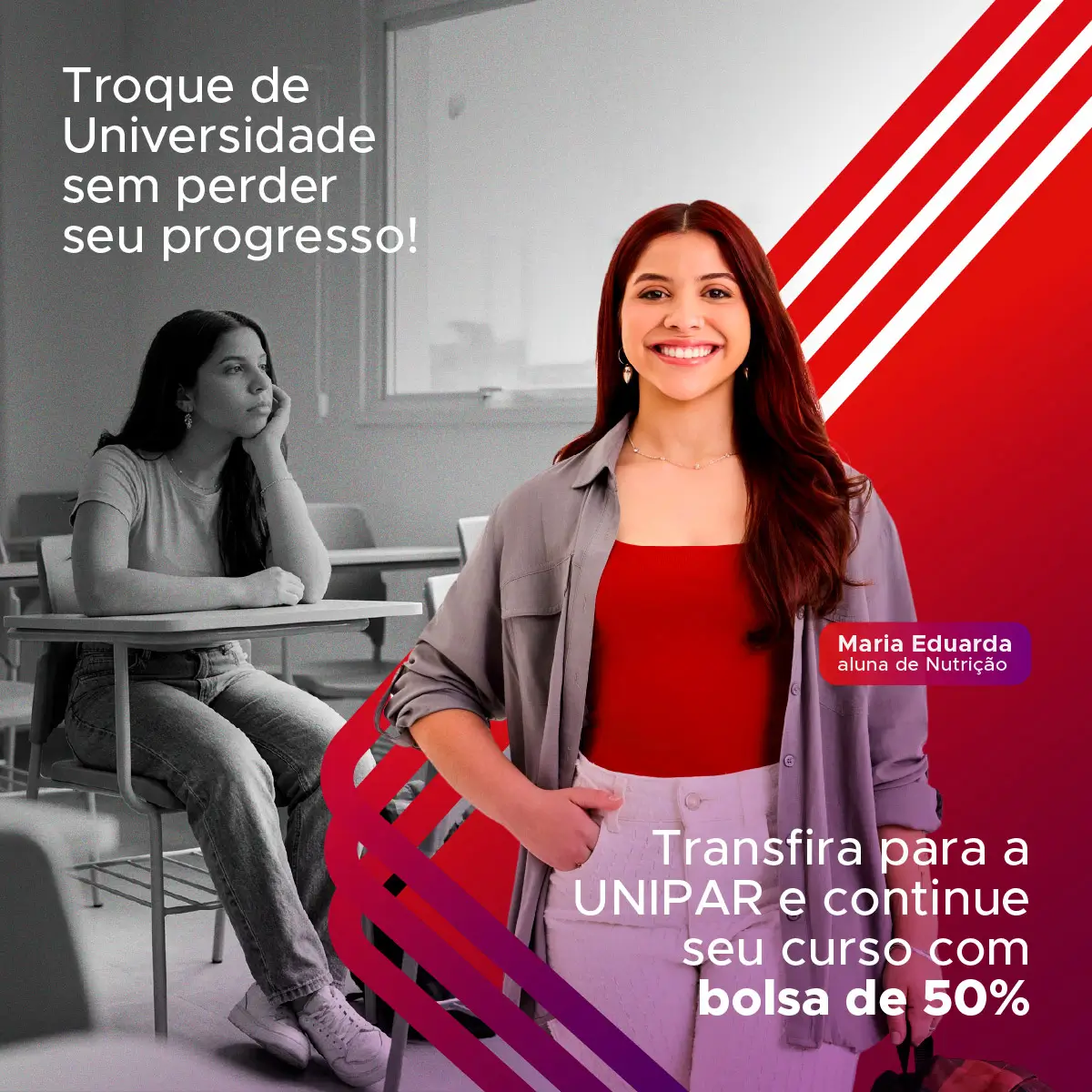 Além de garantir uma nova experiência acadêmica, você ainda recebe 50% de bolsa no curso todo para tornar essa transição ainda mais vantajosa.